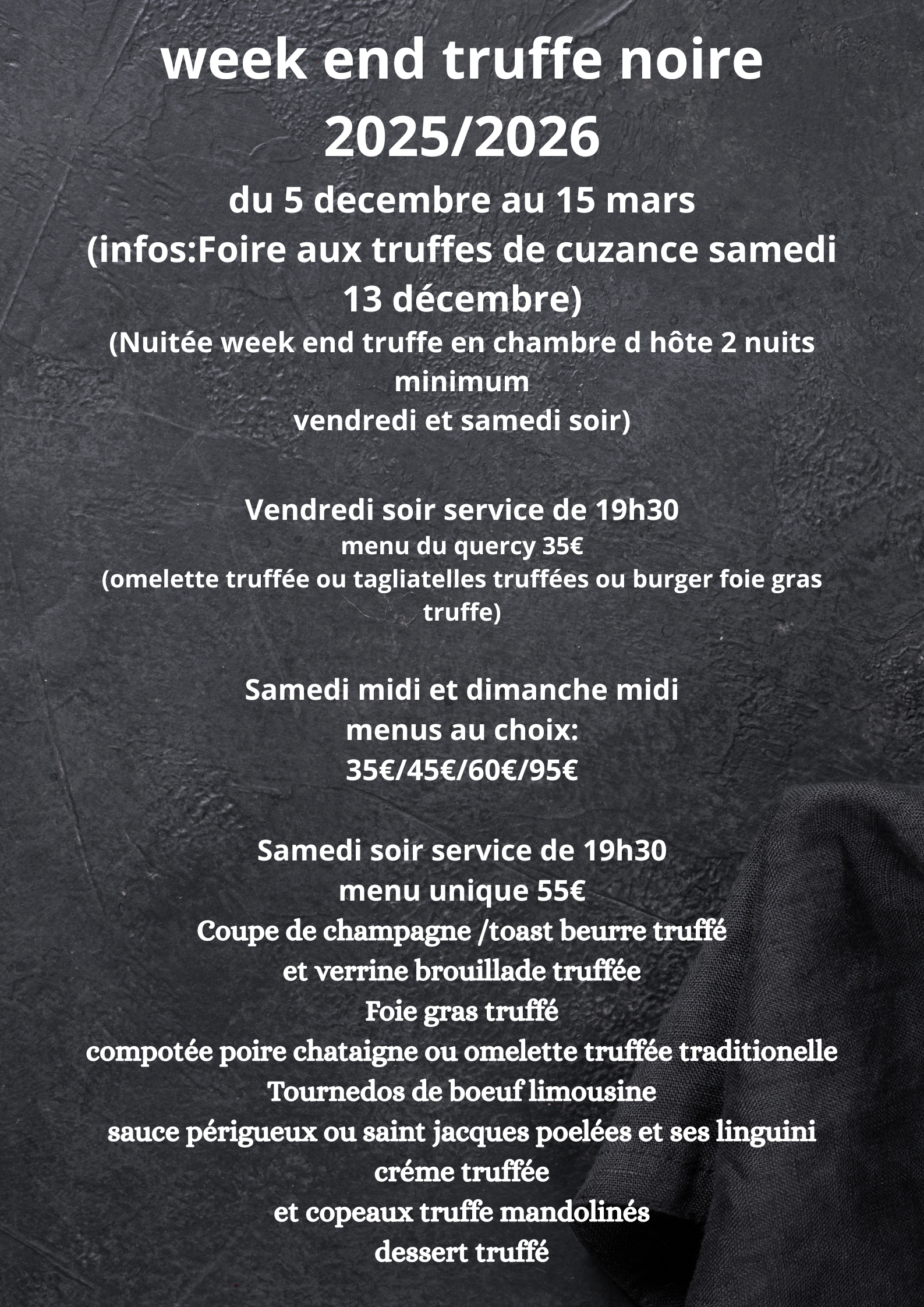 ⚠️ INFO RESTAURANT : Décembre : réouverture des Menus truffe du Mercredi au Dimanche midi et le Vendredi & Samedi le soir & Octobre/novembre : du mardi au vendredi midi plat du jour typique et dernier Menus truffe uniquement en octobre reservation par tél uniquement: 06.89.97.84.39